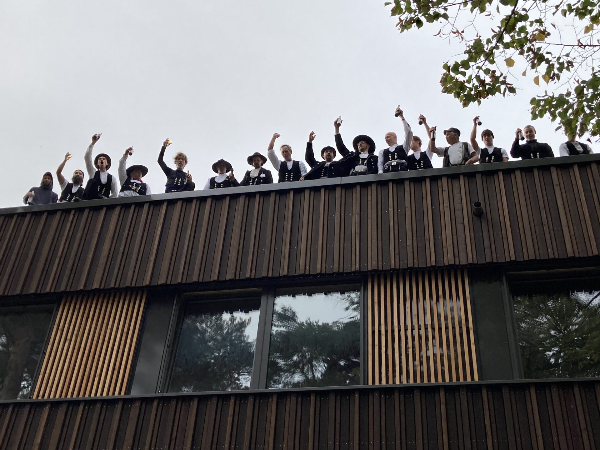 In feierlicher Stimmung mit Gästen aus der Politik und den ausführenden Firmen, Planern und Nutzern wurde der Richtkranz für den Neubau gehoben.