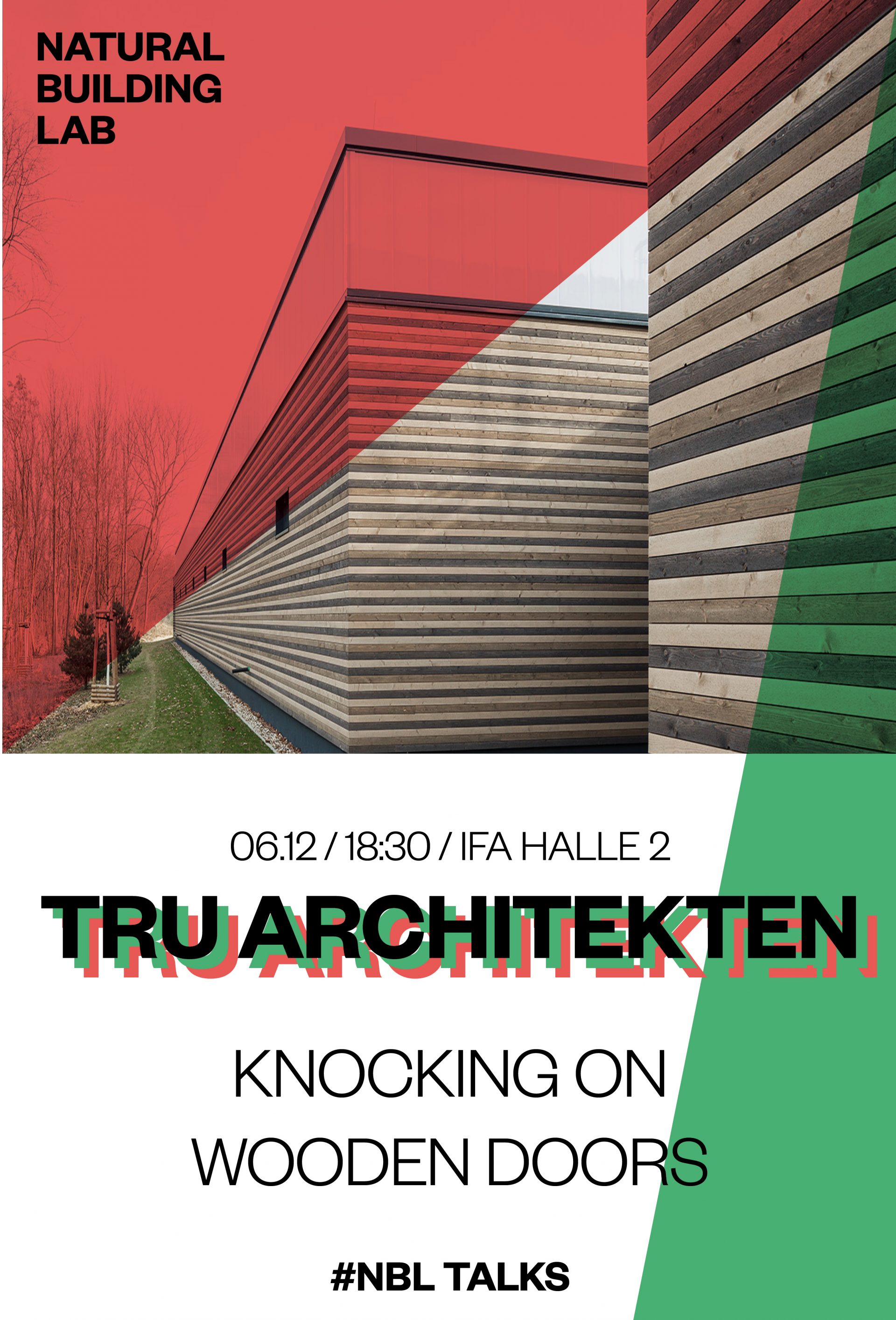 The Natural Building Lab are very happy to welcome Tim Bauerfeind from the practice TRU Architekten to give us an insight into their projects and practice with a focus on innovative timber construction in a lecture “Knocking on Wooden Doors” at the TU Berlin on 06.12 at 18:30.