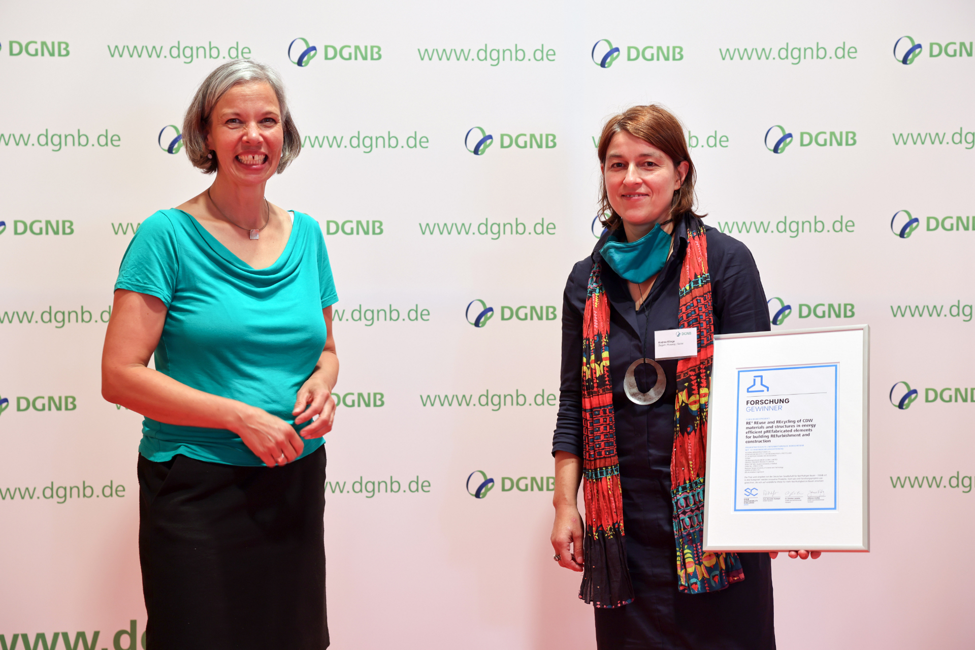 We are very pleased to announce that our RE4 project won the DGNB Sustainability Challenge 2020 in the category ‘Research’ announced by the German Sustainable Building Council.