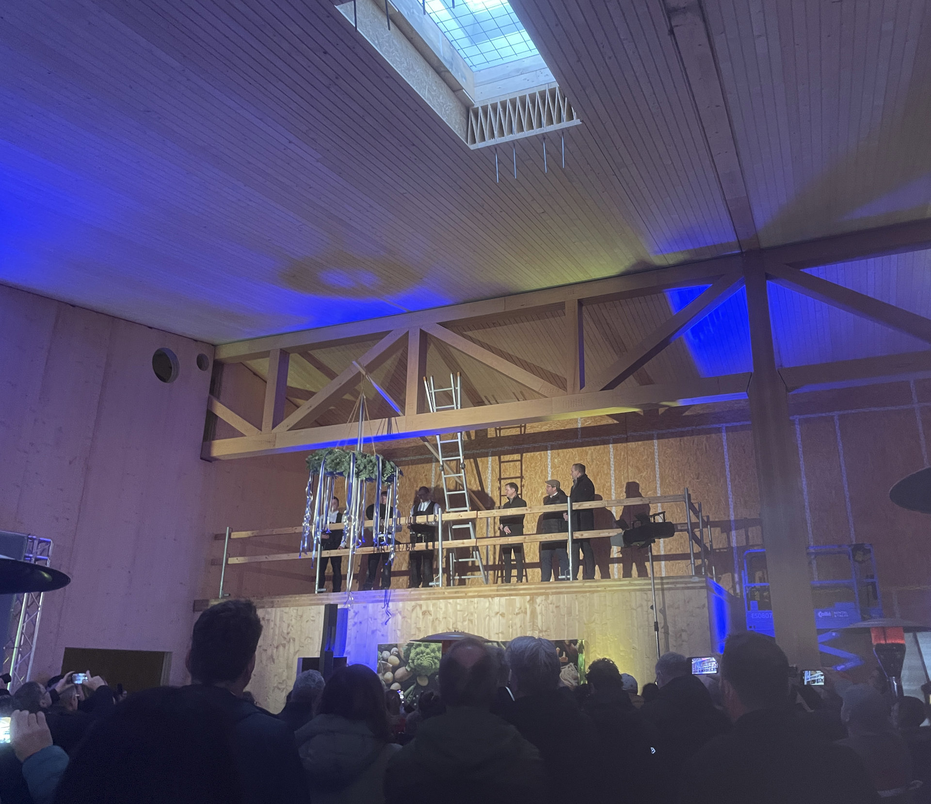The topping-out ceremony for the EDEKA Future Market in Nauen was celebrated on 23rd January. A large part of the timber shell construction has already been completed and should be finished by the end of February – with a supporting structure of columns and timber trusses made of beech as well as exterior walls in timber frame construction with wood fibre insulation and a wooden facade. The wide-span wooden hollow box elements of the roof rest on the trusses. The roof areas facing west are covered with photovoltaic elements, while those facing east are designed as a green roof. Completion is planned for September.