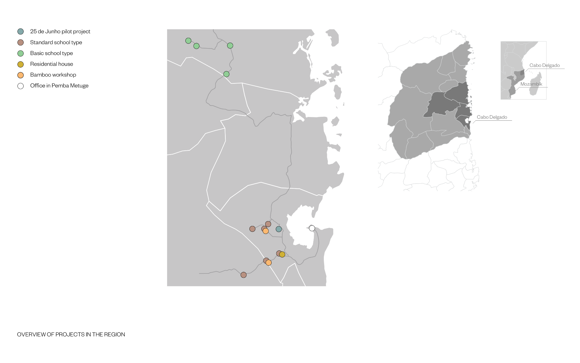 In the northern part of Mozambique, Ziegert Roswag Seiler Architekten Ingenieure were appointed by the Aga Khan Foundation to construct 11 rural primary schools using local building materials such as earth, straw, palm-leaves and bamboo. The buildings can also be used as community centres and were conceived as pilot projects, from which local materials, crafts and techniques could be revived and further developed by local actors, thus strengthening regional cultural identity.