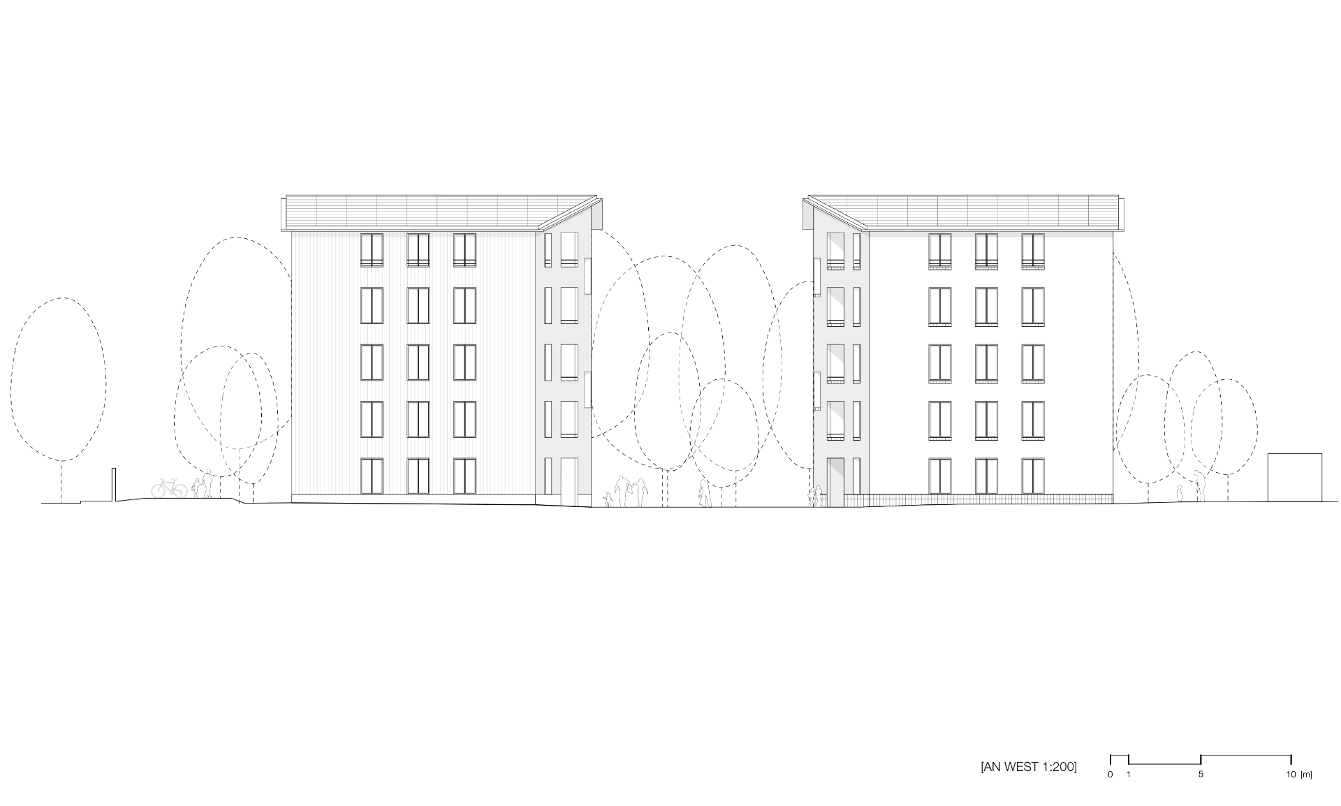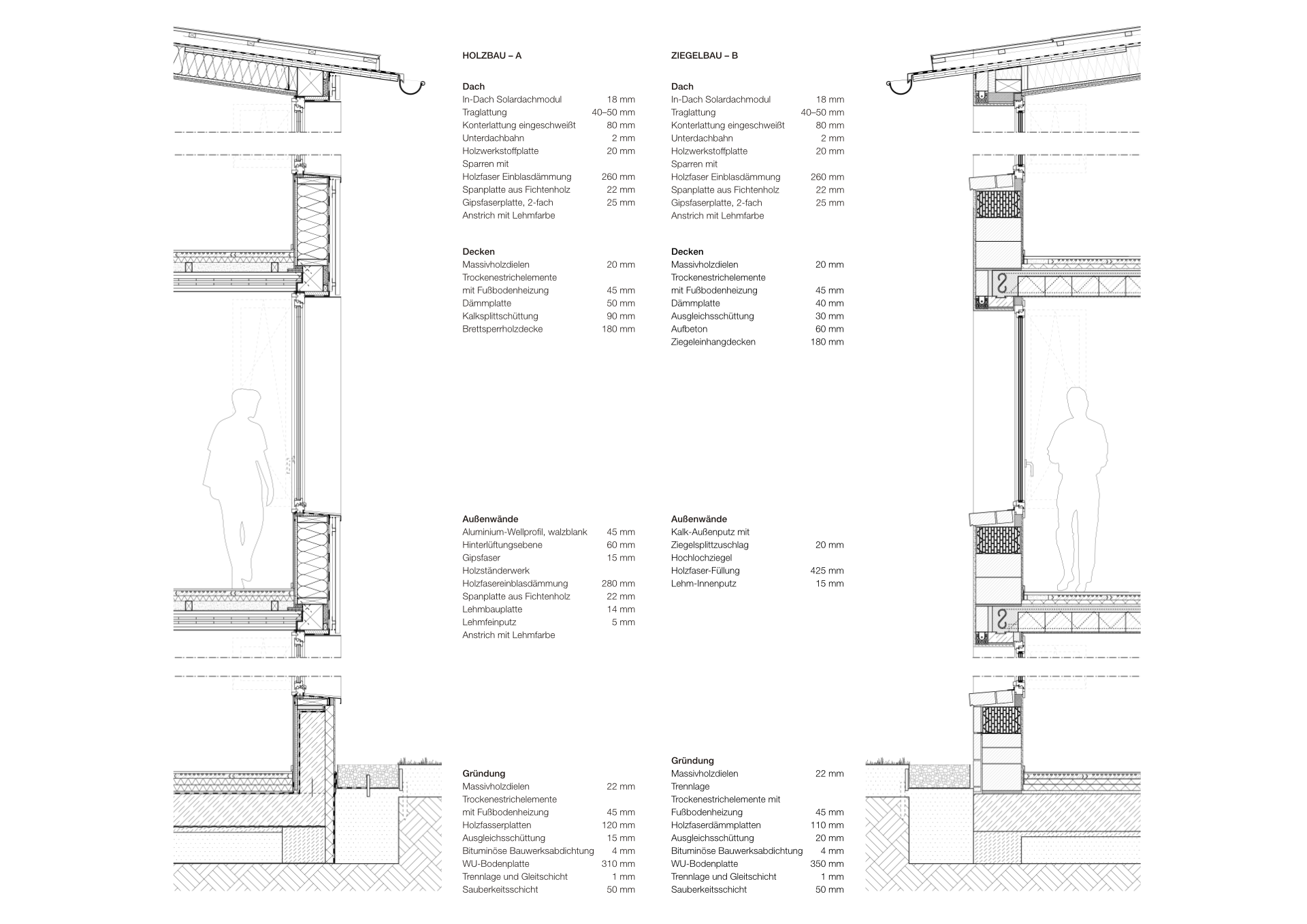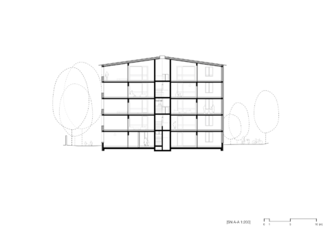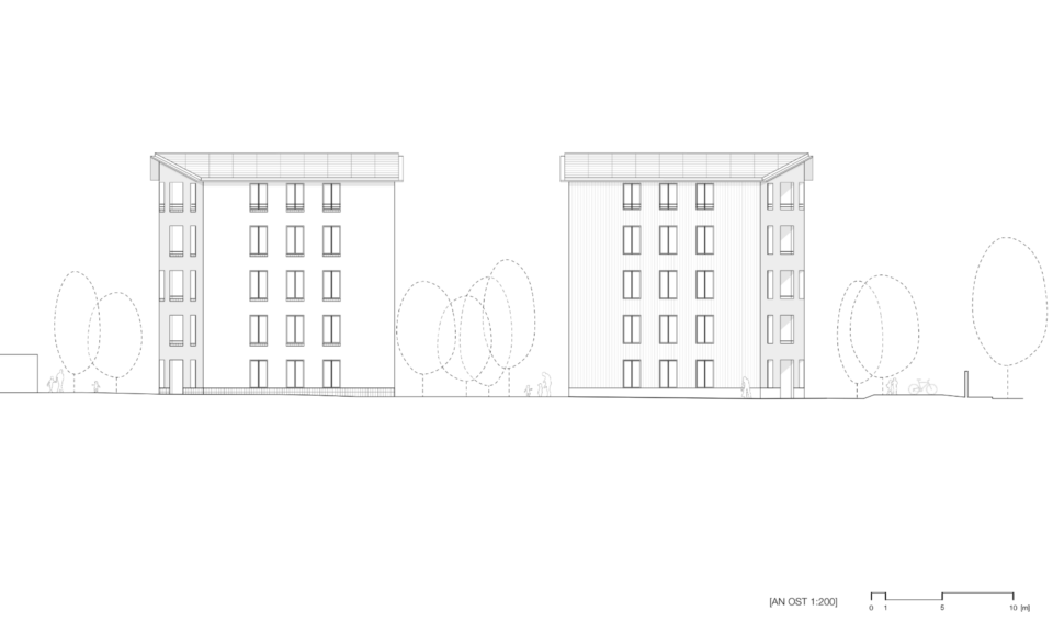 The two detached new buildings with pitched roofs are being built in Alt-Britz. They each have five floors without a basement. 36 eligible rental flats are planned, half of which are barrier-free. The buildings are identical in terms of floor plans and volume, but are designed with different materials. One building is being constructed purely as a timber frame structure, the second as a monolithic brick building with timber ceilings. Clay plaster is used in both buildings. The ecological balance of the two construction methods will be compared as part of the project. The buildings are designed to be as robust, simple, solid and durable as possible. The use of diffusion permeable building materials means that ventilation and air conditioning technology can be dispensed with. The planning, construction process and usage of the houses will be scientifically monitored and evaluated.