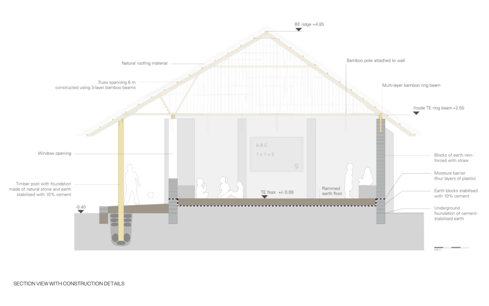 Einfache konstruktive Maßnahmen wie eine feuchteresistente Gründung mit Horizontalsperre und Termitenschutz für Bambus- und Holzbauteile erhöhen die Dauerhaftigkeit der lokalen Bautechniken und wurden an unterschiedlichen Schultypen und einem Wohnhaus angewendet. Außerdem wurde ein Dachtragwerk entwickelt, das stützenfrei übe 6,0 m spannt.